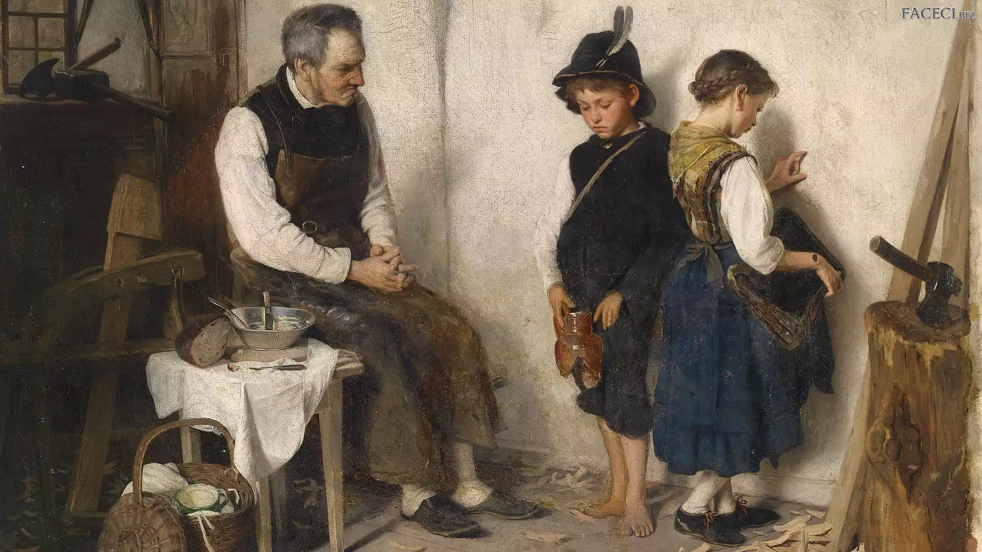 Gustav Igler, Malarstwo, Izba, Dzieci, Obraz, Mężczyzna - faceci.biz